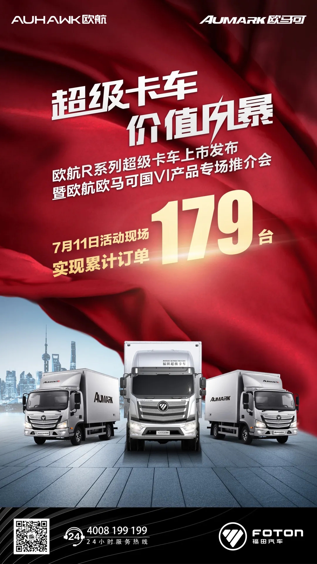 超级卡车 价值风暴|欧航R系列超级卡车上市发布暨欧航欧马可国VI产品专场推介会现场累计订车179台