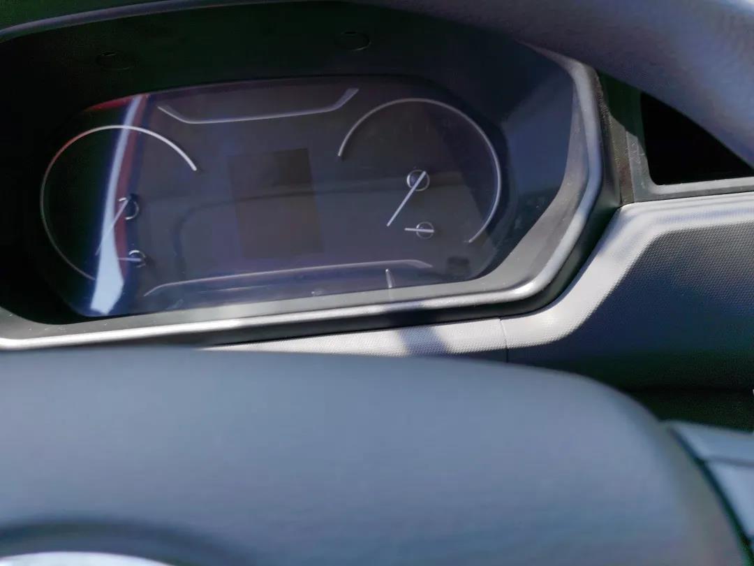 仪表盘中间增设一块大尺寸液晶显示器,左边的转速表和右边的车速表还是采用机械表设计。气压表油表和水温表都集成到了液晶显示器里面。