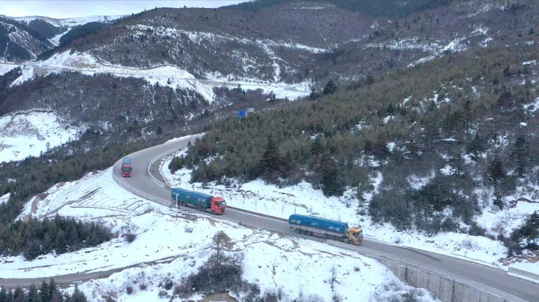由于走在前面的头车及时预警路况,后面的车队行车变得更谨慎。在经过暗冰路段时,这四辆挂着锣响新国标挂车的重卡,不同程度激活了ABS系统,使得车队顺利经过不断出现的暗冰路段,最终安全到达了海拔只有3300米左右的德钦县。