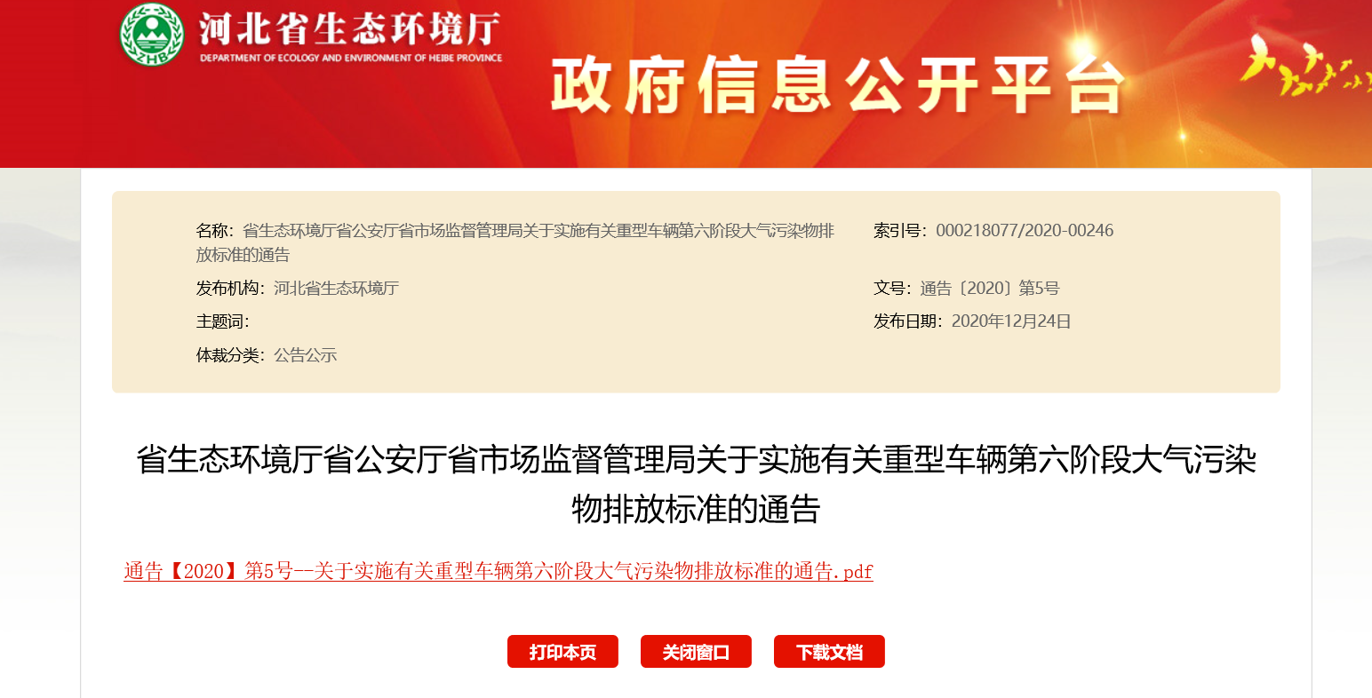 摘要:防治机动车排放污染,不断改善大气环境质量,根据河北省生态环境厅、河北省公安厅、河北省市场监督管理局等部门共同发布的《关于实施有关重型车辆第六阶段大气污染物排放标准的通告》