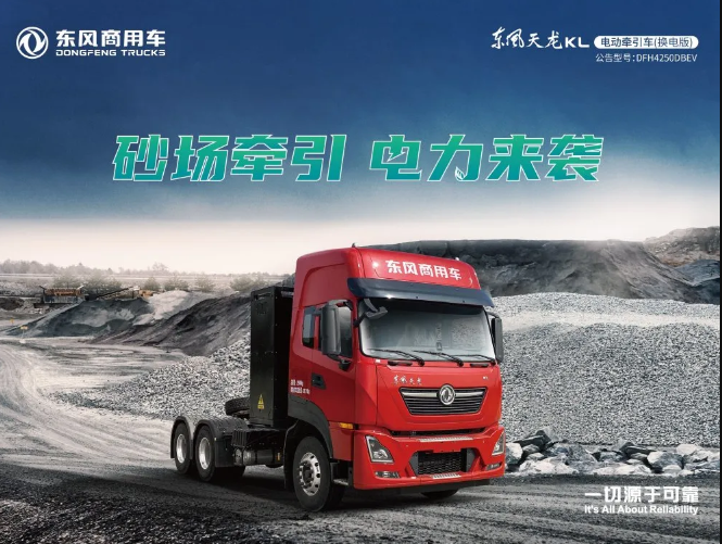 三方团队成员结合绿色矿山场景和换电技术方案,面向京津冀区域的类似场景进行逐个探索,针对客户需求,量身定制了针对砂石料市场的新能源物流解决方案,打造出超可靠、超节能、自重超轻的 东风天龙KL电动牵引车(换电版)。