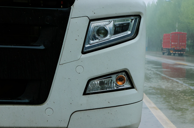 异形大灯组与下方雾灯棱角分明,大灯组内部集成了远近光灯和LED日间行车灯。打开日间行车灯,弧形灯带不仅令灯组造型更加协调,单论照明亮度,即便是在能见度较低的下雨天也同样明显。
