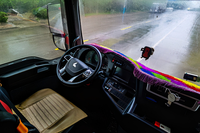 谷雨时节,济南雨水绵绵。在济南零部件工厂附近,物流车队的王师傅正窝在汕德卡驾驶室内,一来是等待装卸调度,二来是出发前享受车内的舒适卧铺与适宜温度,为接下来从济南到三明永安近1600公里的长途专线运输储备能量。