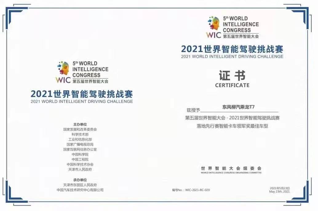2021世界智能驾驶挑战赛(2021 World Intelligent Driving Challenge, 简称“2021WIDC”)于5月21日在天津东丽湖开赛。各大汽车厂商纷纷带着极具前瞻性的技术产品亮相现场,值得一提的是,5月23日,东风柳汽乘龙T7在智能驾驶辅助赛环节以出色的表现,荣获第五届世界智能大会·2021世界智能驾驶挑战赛落地先行赛智能卡车领军奖最佳车型。