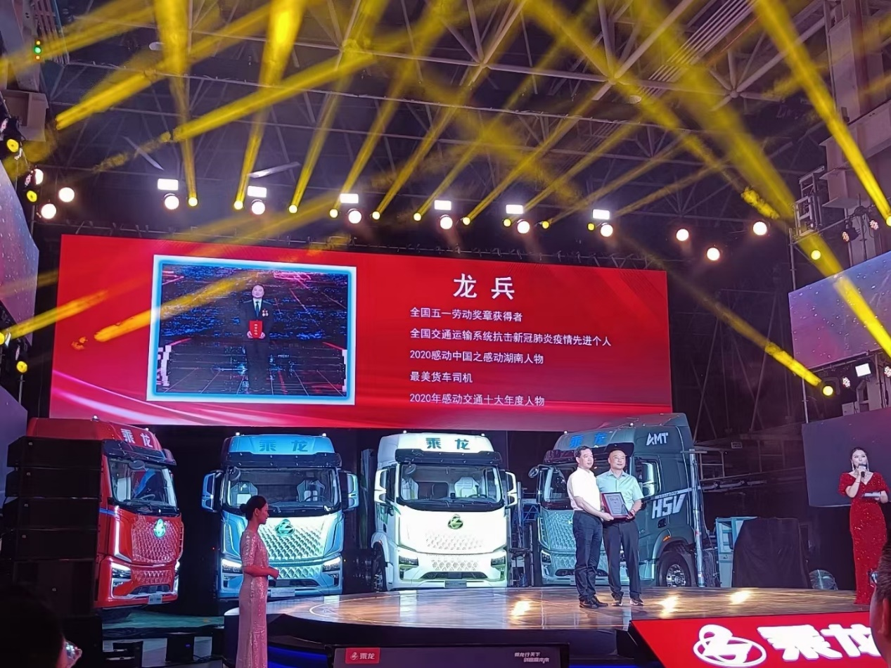 在众多乘龙老友中,0号老友尤其引人瞩目,他就是今年全国五一劳动奖章获得者龙兵。他曾在武汉疫情最严重时期,先后11次逆行湖北,及时送达各项物资,因其伟大英勇的奉献精神,先后荣获众多荣誉,更在党的百年诞辰之际,作为新发展党员代表出席庆祝中国共产党成立100周年新闻发布会。作为1700万卡友的缩影,也作为这个时代最美卡车人,龙兵被授予“乘龙社会责任功勋人物”勋章。