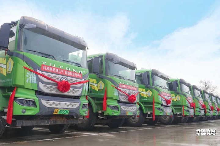 ▲2月16日,宇通向河南淄翎交付40台宇通氢燃料重卡