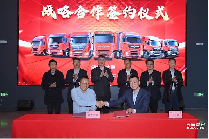 中铝创新开发投资有限公司纪委书记、副总裁冯修青,资本运营总监姚俪,浙江铝程智能装备有限公司副总经理缪安,深圳淘淘货车互联网科技有限公司创始人王月,深圳市海天信诚货物运输有限公司董事长陈新亚;东风商用车党委副书记、工会主席陈向阳,东风商用车营销公司总经理、后市场事业部总经理谢志鹏,东风汽车贸易有限公司副总经理(主持工作)刘力等出席签约仪式,并在东风商用车有限公司车辆工厂以及品牌体验中心进行参观指导。