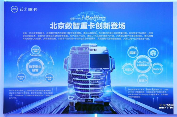 基于数字孪生技术,北京重卡打造行业首个数字孪生重卡模型,通过虚拟仿真分析和验证,数字孪生伴跑,实现从数据中来,到数据中去,打造数字孪生研发闭环,实现产品迭代升级。同时,以“数智”为基因,北京重卡产品研发历时近300天,深入121个城市和地区浸入式调研打造用户数字模型,精准洞察用户需求,实现精准研发。