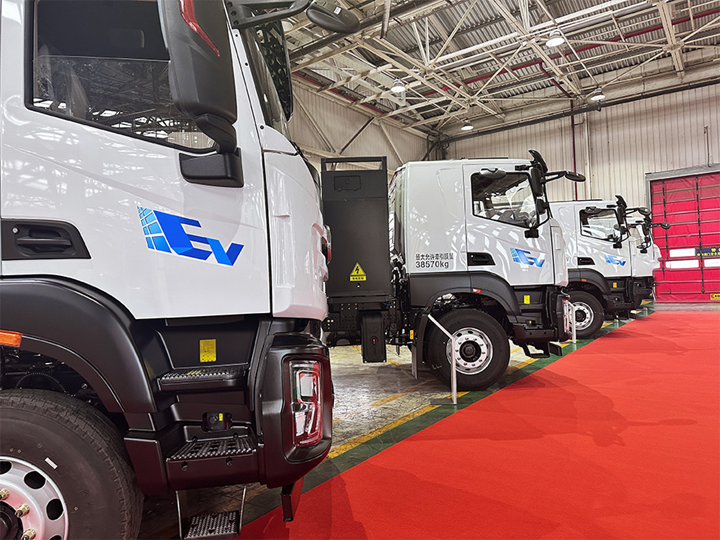 下线仪式现场,上汽红岩总经理杨汉琳表示:“我国港口物流市场前景广阔,今天下线的偏置头纯电动牵引车采用了“4×2”电机直驱方式,驾驶视野好,具有动力强劲、能耗低、转弯半径小、效率高等特点,这是上汽红岩通过数字赋能和技术积淀,为大家提供的最佳港口绿色物流运输解决方案,对实现码头减排和绿色港区建设有着深远的影响。”活动现场,我们还可以看到上汽红岩新能源纯电牵引车、上汽红岩L4级智能重卡、上汽红岩杰虎H6燃气重卡等针对港口运输的重卡产品集体亮相,全面布局港口立体运输大通道,推动港区与厂区、铁路、公路运输的衔接互通。此次上汽红岩新能源偏置头牵引车的成功下线,预示着上汽红岩新能源重卡的智造实力更进一步,将助力更多沿海港口转型成为具有全球领先水平的智慧港口、绿色港口。