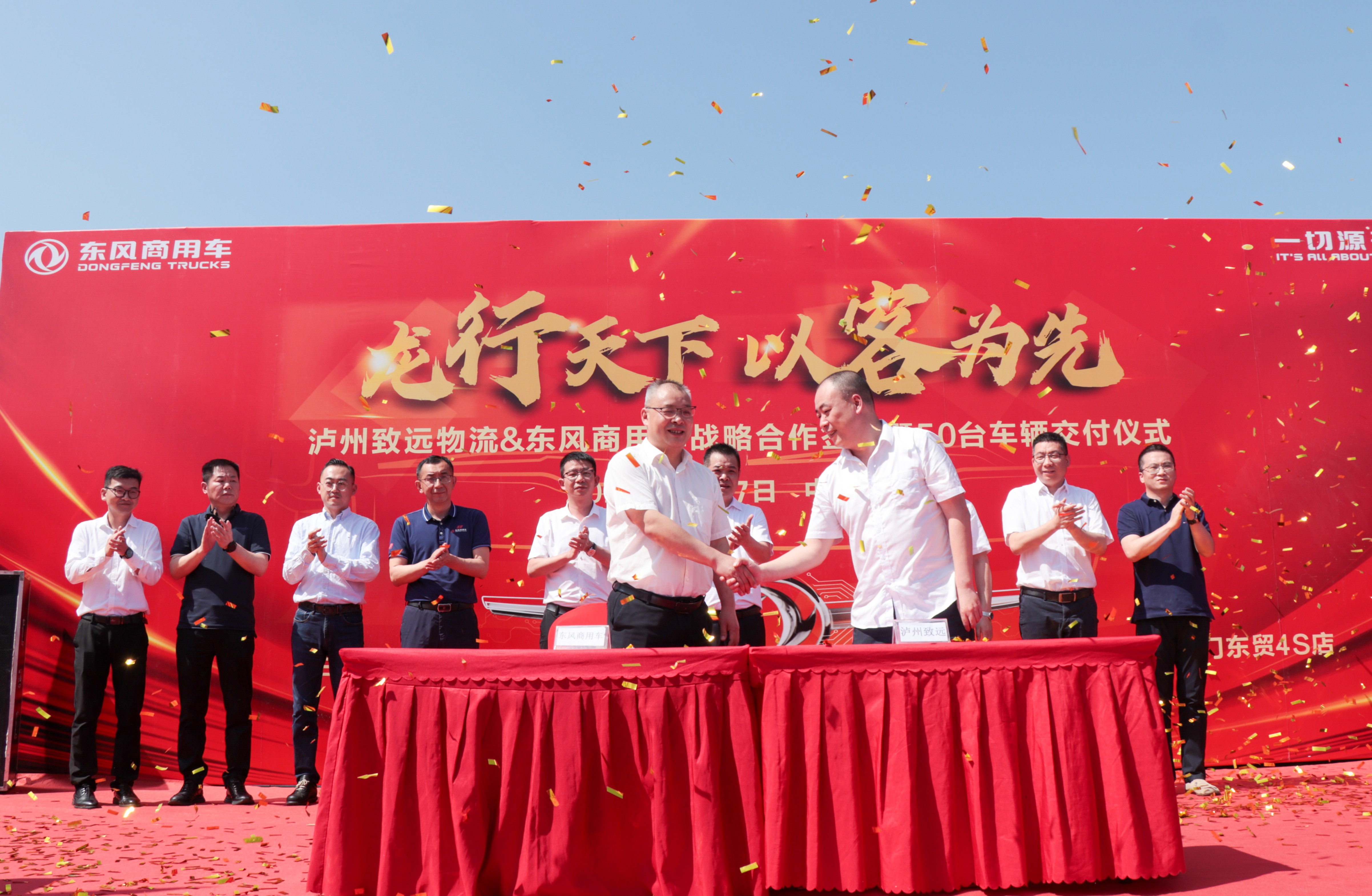以品质筑合作,以可靠共未来。秉承“以客户为中心”的品牌理念,东风商用车将始终不懈地推动技术创新和人性化服务升级,向客户提供适应性场景的油、气、电车型,以“整车+后市场”一体化解决方案助力客户降本增效、创造更高运营价值,携手更多像泸州凯捷、泸州致远这样的优质合作伙伴,探索转型升级新路径,为我国物流行业的新发展聚力同行、引领方向。