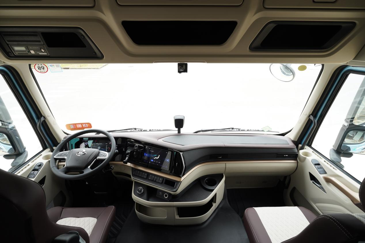 采用26款专属宽体驾驶室,搭配四气囊全浮悬置系统,高效过滤路面颠簸,长途行驶也平稳安逸。配备皮质气囊通风加热座椅,冬暖夏凉,大幅缓解驾驶疲劳,提升驾乘幸福感。