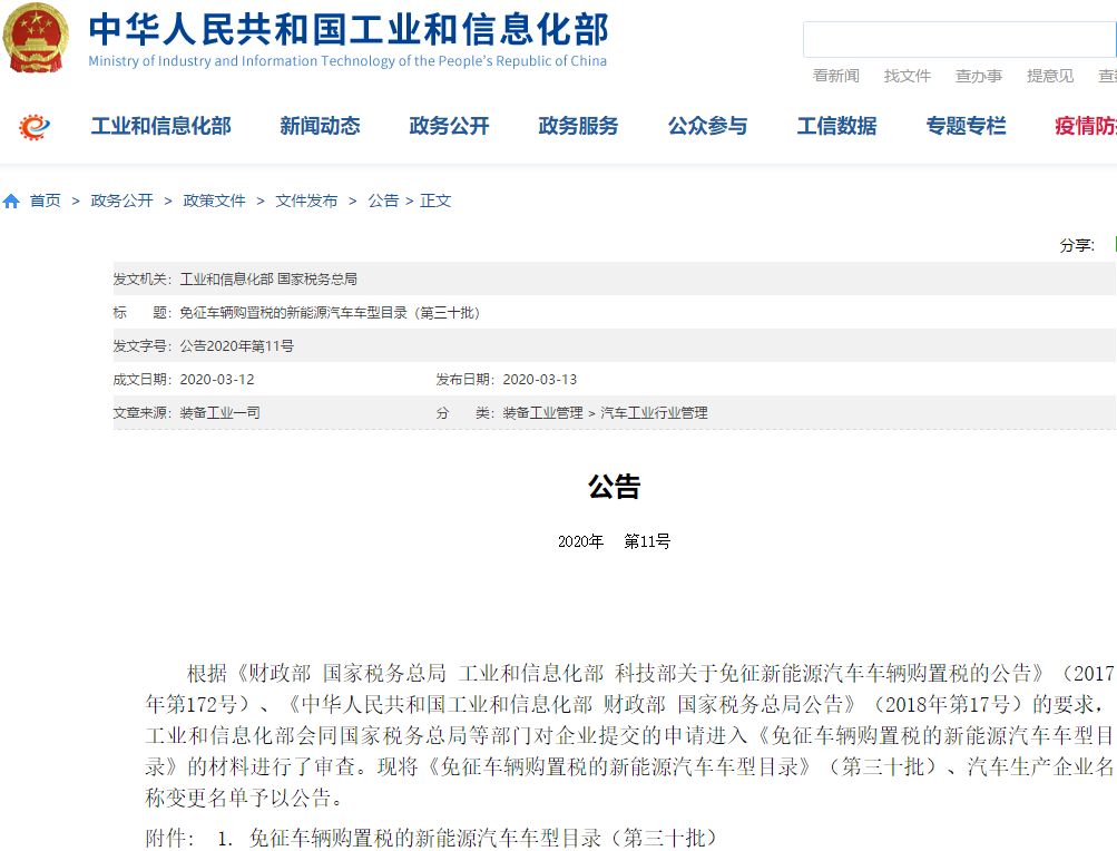 摘要:工信部发布免征车辆购置税的新能源汽车车型目录(第三十批),共有321款车型入选。其中包括77款纯电动乘用车,纯电动货车16款,纯电动专用车95款;20款插电式乘用车20款,插电式客车5款,专用车1款,燃料电池车18款