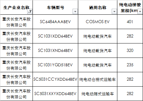 重庆方面,共有4家本土车企的11款新能源车型入选该批次目录。 分别是重庆长安汽车股份有限公司的1款乘用车,3款纯电动载货汽车和2款纯电动专用车;重庆金康新能源汽车有限公司的1款乘用车,以及2款插电式混合动力乘用车;重庆瑞驰汽车实业有限公司的1款纯电动封闭货车;重庆恒通客车有限公司的1款纯电动城市客车。 详情如下。 01 重庆长安 02 重庆金康 03 重庆瑞驰 04 重庆恒通