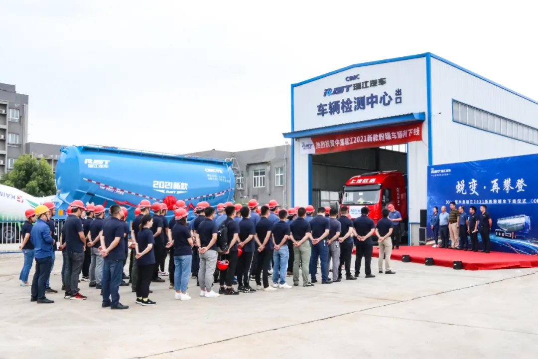 6月29日,“蜕变·再攀登——中集瑞江2021新款粉罐车下线仪式”在芜湖中集瑞江汽车有限公司厂区内隆重举行,中集瑞江副总经理张世涛、粉罐车事业部总经理孙建、粉罐车营销总监强璐、品控中心总监崔小凤、粉罐车生产部经理黄磊以及杭州集瑞汽车销售服务有限公司总经理马勇、安徽鑫瑞江汽车销售服务公司总经理董育鑫等领导出席下线仪式。