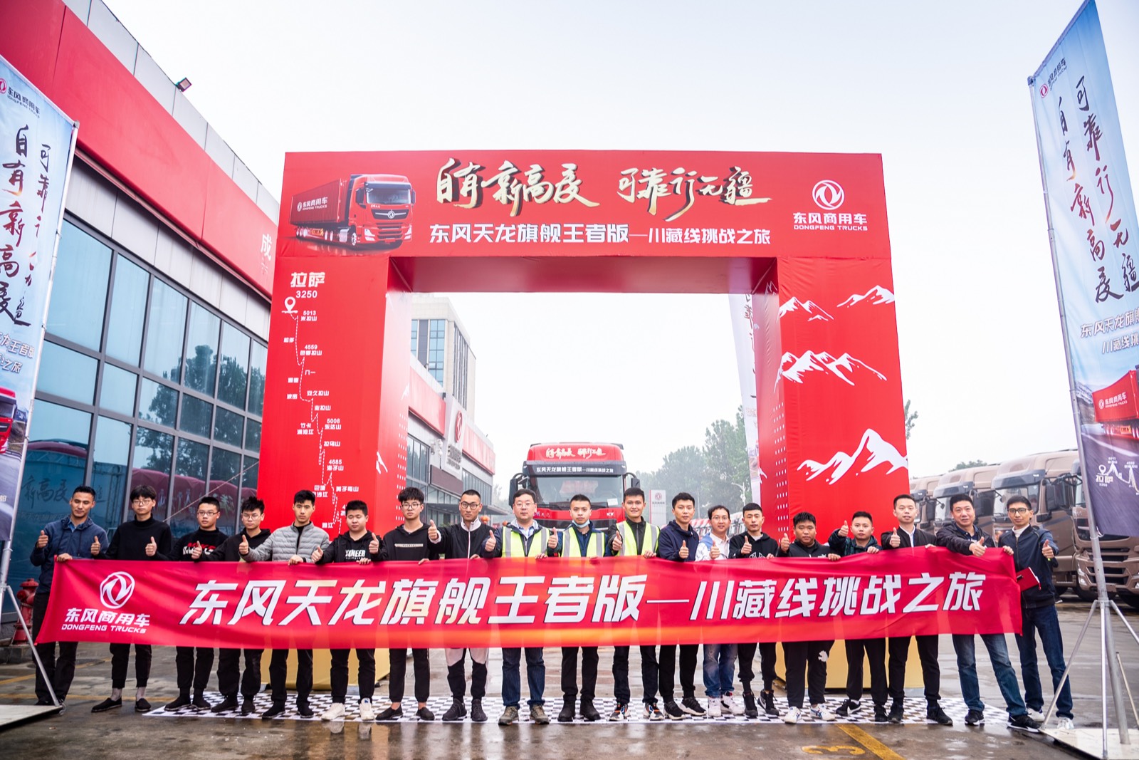 4月19日,“自有新高度,可靠行无疆”东风天龙旗舰王者版川藏线挑战之旅正式开启!在这绿意盎然的季节,随着旗帜在空中飞扬,在众人期盼的目光中,东风天龙旗舰王者版