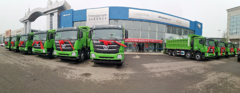 5月21日,福田戴姆勒汽车向客户批量交付了75台欧曼法规版自卸车,以承担企业未来相关重点工程项目路用材料的运输任务。