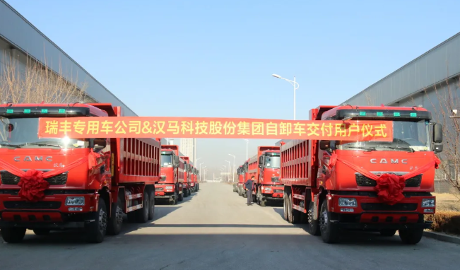 3月7日上午,汉马H9自卸车交付仪式暨瑞丰专用车铝镁合金轻质罐车生产线奠基仪式在瑞丰专用车厂区举行。